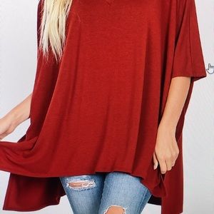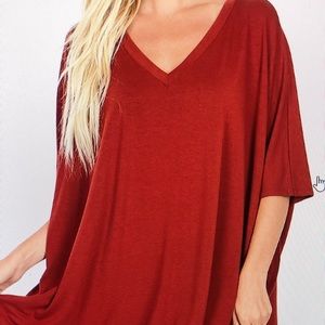 Oversized Rust Tunic. It will be your favorite fall go to shirt. Hides all the imperfections!! I personally love this one!