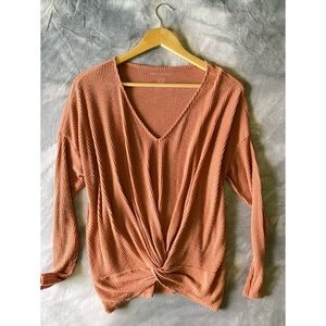 Scoop neck faded orange twist front tee