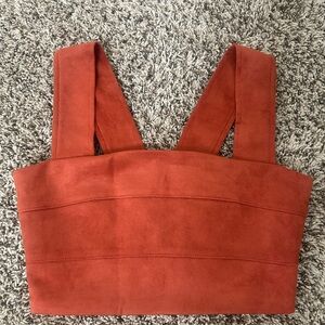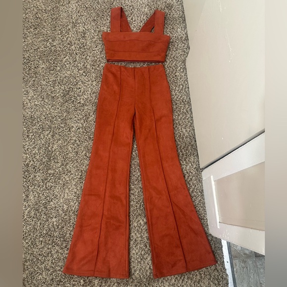 New with tags two piece rust colored set! The bottoms sit around a mid rise and have a slight flare bottom. The material is suede like and comfy!