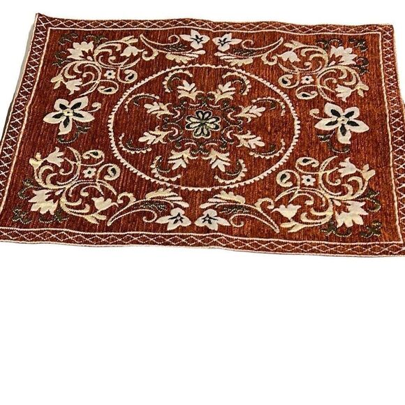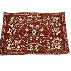 Rust White Floral Embroidery Polyblend Set of 6 Dining Placemats 17.5x12