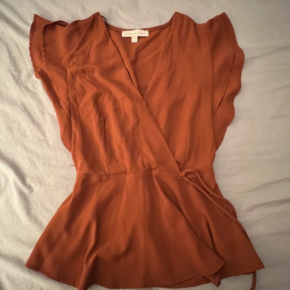 Elevate your style with this elegant rust wrap top. Perfect for any occasion, it offers a flattering fit and chic design.