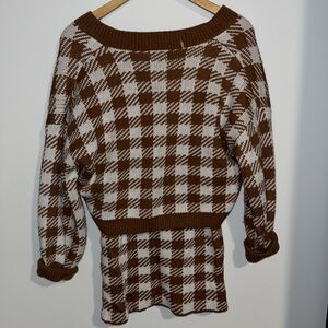 Houndstooth-print knit matching cardigan and mini skirt