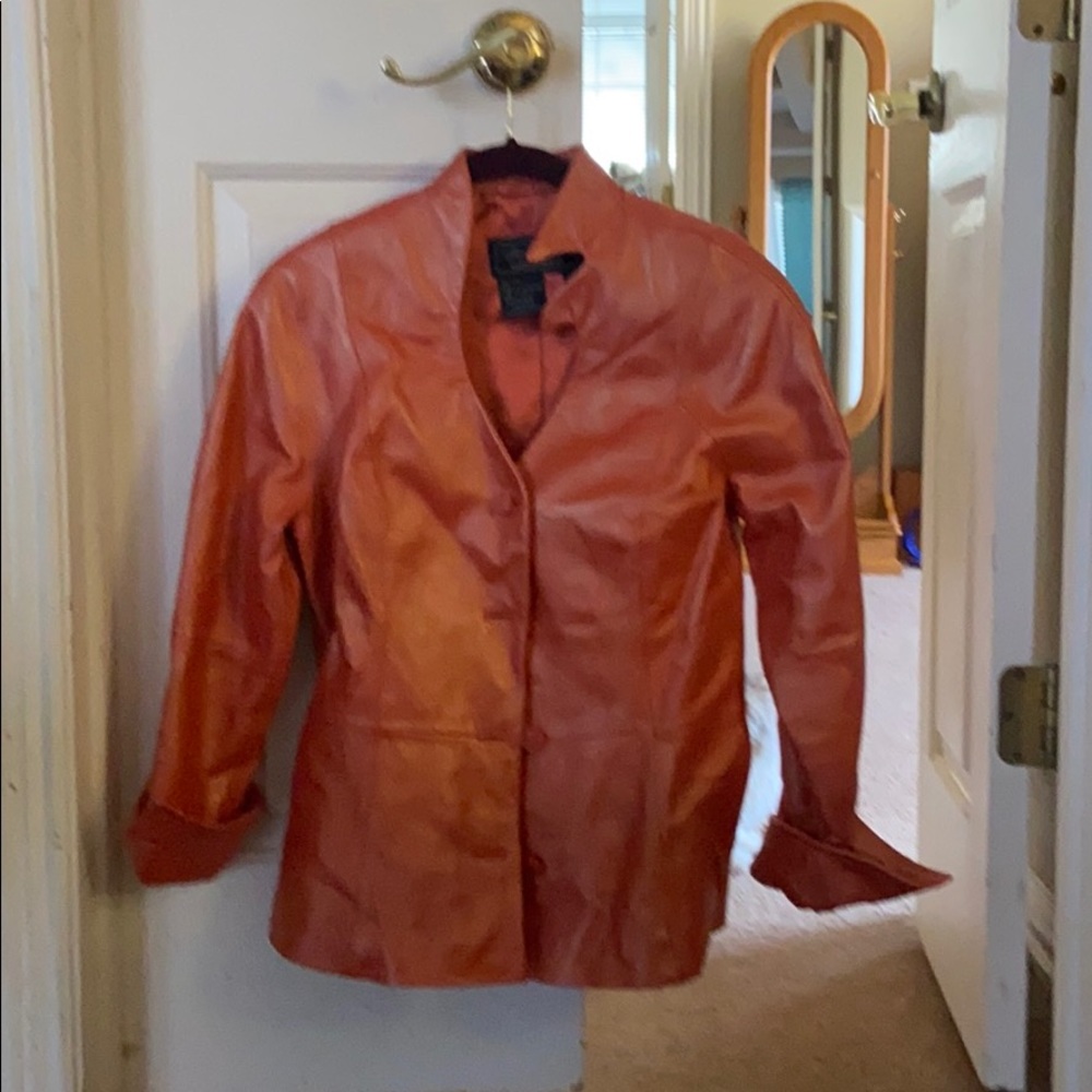 This beautiful jacket hit around mid hips. It has a cut out design on collar and has 6 buttons down the front.