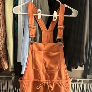 Rust colored overalls, size small. Washed but never worn