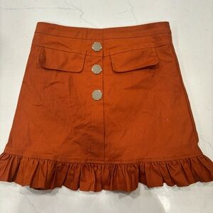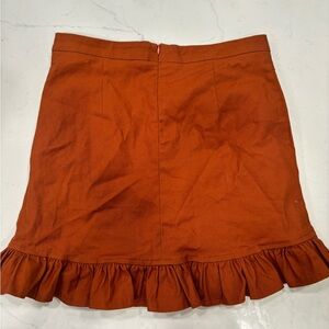 Rust colored skort Ruffle detail on bottom Zip up back Form fitting
