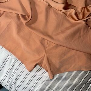 The top waist band is elastic so it’s stretchy! And the fact that it’s actually a skort makes it so much more functional. The color is perfect for the fall! Size large, side zipper