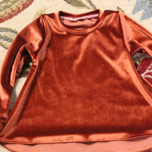 This rust colored velvet top is lush and thick. Ready for the Fall. It is believed to be a Lorin Lane Clothing item but has no tag. #174