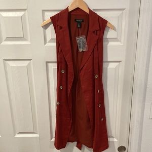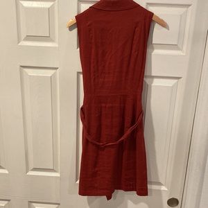 Trench dress that can be worn as a vest or a dress. Looks cute as a layering piece for a fall outfit. Or just as a trench dress with wedges.