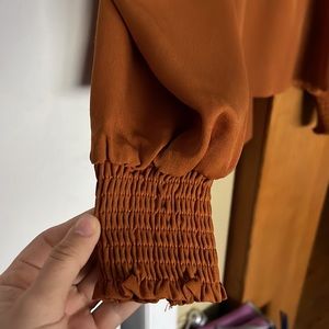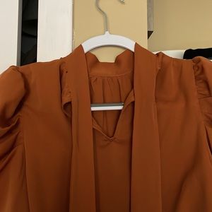 Rust orange blouse.