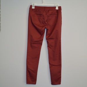 These pants are very comfy and hardly worn. The rust color is versatile and unique, with zipper pockets to keep your items safe! THEY ARE A SIZE 3