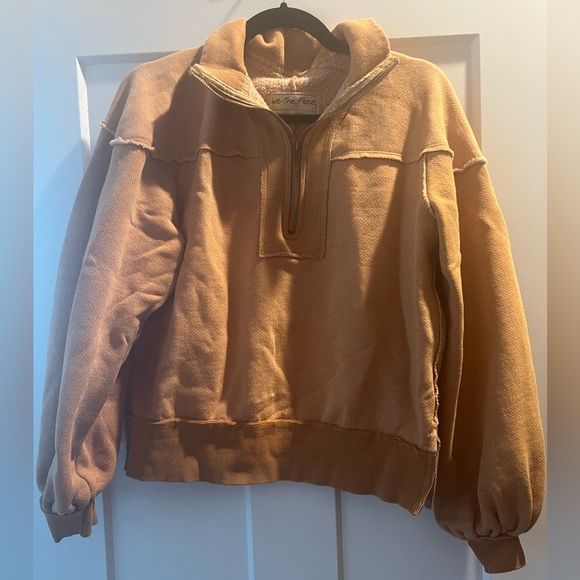 Cozy free people rust colored quarter zip pullover with split hem. Fleece lined. Only worn once