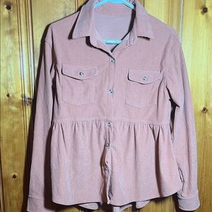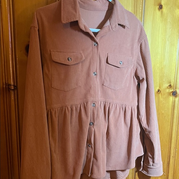 Stylish rust color ribbed top. Perfect for casual wear. Size M/L. No Brand. Super soft and cozy. Needs new button on bottom.