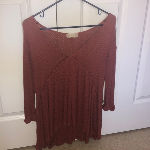 Altar’d State rust colored thermal. Three quarter sleeves with small cuff. One button on the back is missing, it was purchased that way! Can wear with or without bralette. Size small, great condition!