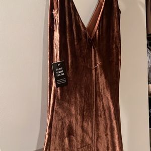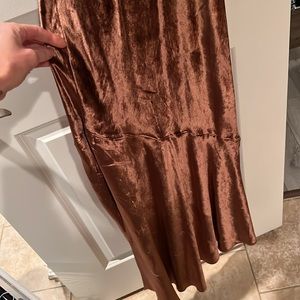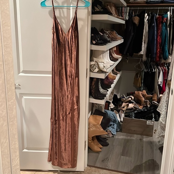 Rust colored velvet maxi dress from express no zippers or closures