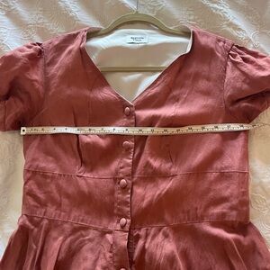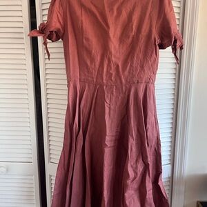 Rust-Colored Button-Front Linen Midi Dress