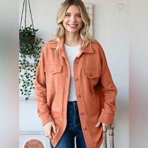 Cute casual jacket made of polyester rayon and spandex made in the USA. Will look great with jeans.