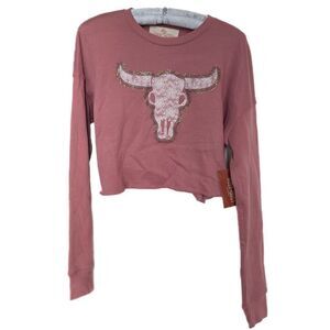 Rust + Dust American Original cropped rose colored sweatshirt. Bull with lace and bling!