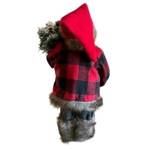 Rustic 1990s Woodland Santa Claus Figure – Plaid Coat, Snowshoes & Tree – Cabin Christmas Decor