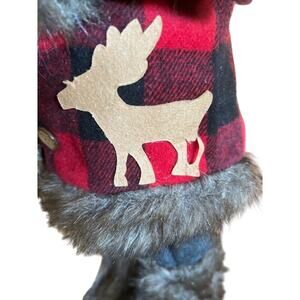 Red & black plaid flannel coat with faux fur trim and reindeer applique (reindeer leg is loose)