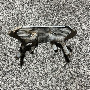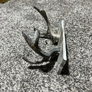 Note- this is a heavy cast iron piece. Rustic so multiple colors are visible on the antlers and plate.