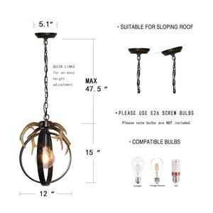 Elevate your space with this rustic farmhouse pendant light, featuring a handcrafted black iron finish with decorative deer antlers. The 1-light fixture brings warmth and charm to kitchens, dining rooms, coffee bars, foyers, and more. Chain length is fully adjustable up to 47.2” to fit a variety of ceiling types, including sloped or vaulted designs.