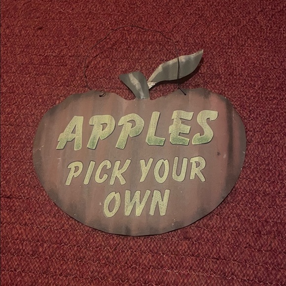 Charming apple-shaped sign with 'Apples Pick Your Own' text. Perfect for rustic decor. light weight 12 inches long