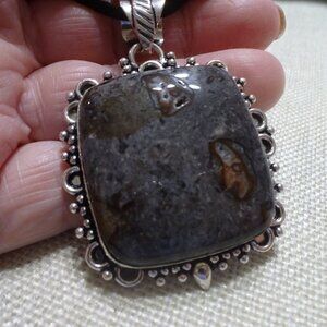 Rustic BROWN SNOWFLAKE JASPER Handmade Sterling 925 Pendant on a 18" Black Suede Cord (2 1/2" x 1 3/4" Pendant) #629C