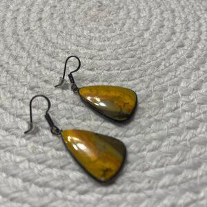 Rustic BUMBLE BEE JASPER Handmade Black Metal Dangle Earrings #745D