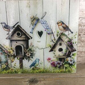 Rustic Birdhouse Glass Cutting Board
