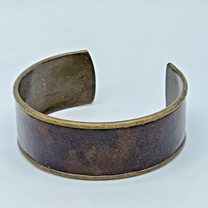 Rustic Brass Tone Cuff Bracelet Faux Brown Leather Unisex Western Jewelry
