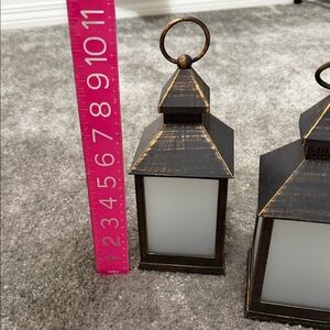 Enhance your home decor with this elegant set of rustic bronze lanterns. Perfect for adding a warm, inviting glow to any room.