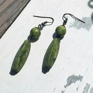 Rustic Bronze Metal Mottled Green Lightweight Acrylic Handcrafted Earrings