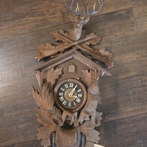 Enhance your home with this charming rustic brown cuckoo clock. Its intricate design adds a touch of elegance to any wall decor.