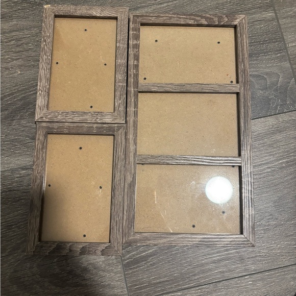 Display your cherished memories with this rustic brown multi-photo frame. Its elegant design adds a touch of warmth to any room. there is a 3 photo frame & 2 singles.