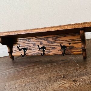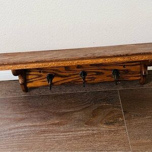 Enhance your home decor with this rustic brown wall shelf featuring sturdy hooks. Perfect for organizing and adding a touch of elegance to any room. Size is L 24. W 6. H 5.5 inch