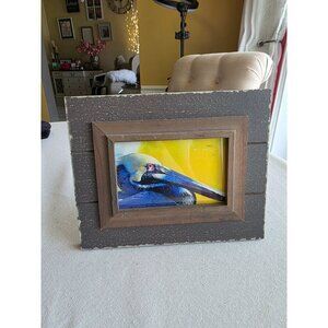 Rustic Brown Wood Picture Frame With Pelican Artwork 7" X 5" Coastal Decor