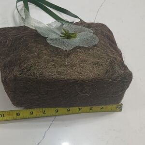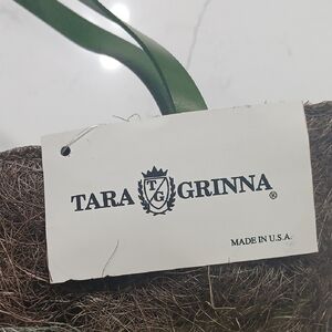 Rustic Brown and Green Floral Accent Tote Leather Handles New With Tag TARA GRINNA, MADE OUT WITH NATURAL STRAW