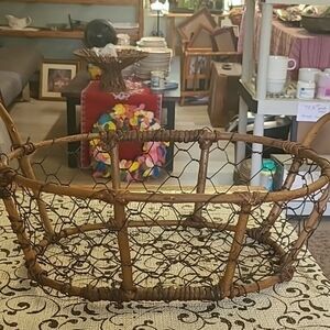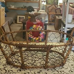Enhance your home decor with this rustic brown wire basket. Perfect for adding a touch of vintage charm to any room. It is approximately 14 inches long, 10 inches wide and 5 inches in depth