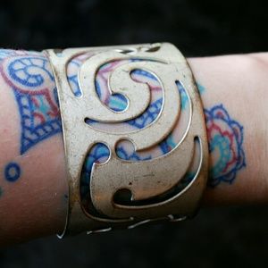Off-white cut-out cuff, brushed for a rustic, bohemian feel. Is slightly malleable so can fit a few sizes. Great condition.