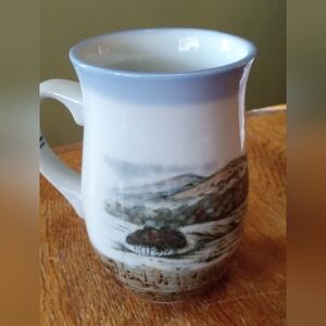 Savor your drinks in this rustic ceramic mug featuring a detailed buffalo design. The white and brown hues bring a touch of nature to your kitchen.
