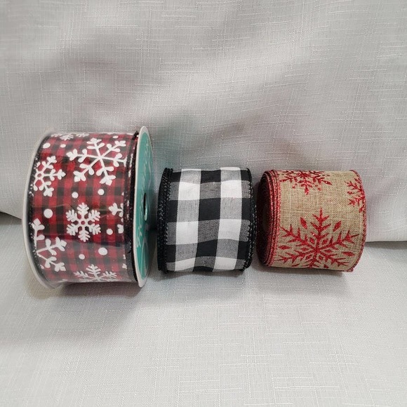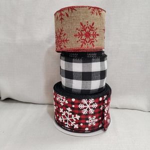 Burlap Wired Holiday Ribbon Bundle Lot of 3 spools. The sizing is- 2.5" x 10 Yds for each spool of ribbon so a total of 30 yards. Christmas decorations, wreaths, Garland, and many more possibilities for you to get creative.