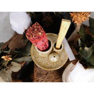 Infuse your sacred space with intention and functionality using this rustic ceramic incense and smudge holder. Designed for spiritual practices, this piece is perfect for catching ash while holding smudge sticks, palo santo, or incense. Its earthy, speckled glaze embodies a timeless connection to nature, making it an ideal addition to your altar or ritual setup.