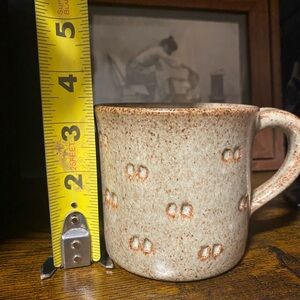 Charming ceramic mug with a rustic embossed pattern. Features a warm cream base with earthy brown accents.