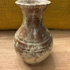 Charming rustic ceramic vase with a speckled design. Perfect for home decor. Vintage 1971, signed