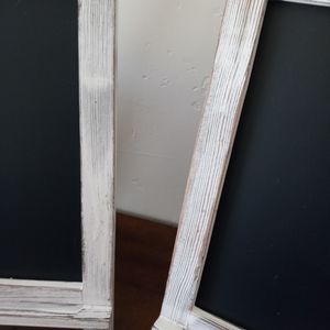 white paint finishes are different for both chalkboards. Can leave as is or paint to your ideal color.