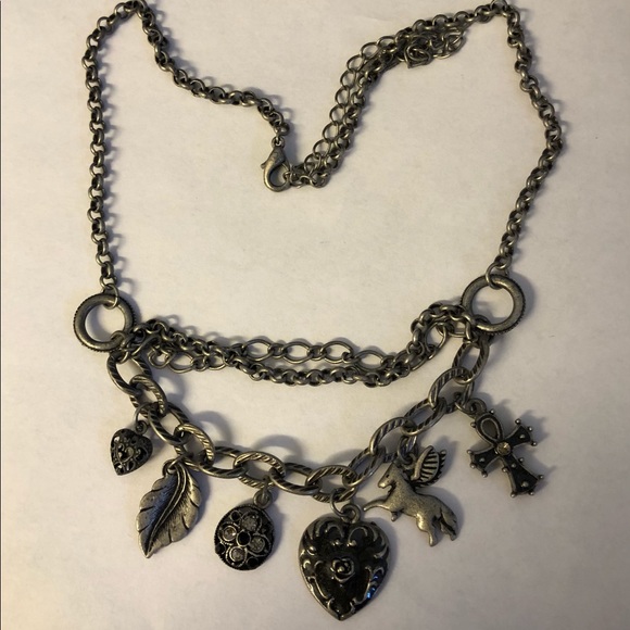 Woman Necklace Rusty silver Color Charms 16”-20” Length