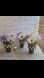 A trio of heavy weight hand painted distressed checked planters have beautiful vintage gerbera daisy florals in soft, cozy colors. Each rustic checked flower pot has a super matte finish to enhance the distressed, worn outdoor weathered paint style look and features four vintage florals arranged in hand cut floral straw ready to be positioned to your preference. Set includes matching distressed checked tall tea light LED candle with on/off switch and convenient replaceable battery compartment underneath. The unique cone shape of these ceramic planters allow them to be placed in the smallest of spaces while commanding the eye's attention with a 9 inch tall sizable arrangement. Arrange them together as a table centerpiece or on a fireplace mantle; or display them separately throughout your home. Pots measure 3.5 x 4.5 inches; arrangement measures approximately 9 inches tall. Tea light measures approx. 1.5 x 1 inch. Total weight combined is 2 lbs 7 oz.