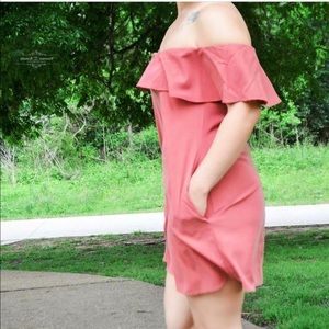 Rustic Chic Off Shoulder Midi Above the Knee Dress! Casually! Comfortably! Cute! & Chic!