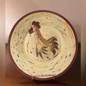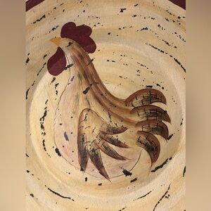 Add charm to your home with this rustic chicken/rooster decorative plate. Featuring a warm cream and brown design, it's perfect for any country-style decor.