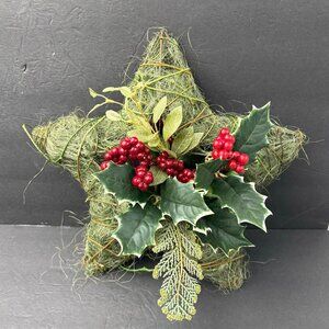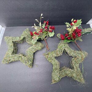Rustic Christmas Star Wreaths With Artificial Holly & Berries Set Of 2 Farmhouse